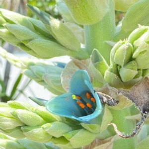 ■Puya alpestris ・プヤ アルペストリス(ヒスイラン) 根鉢だったので植え替え。みどりのまとめ「大阪市立大学理学部附属植物園」に、ヒスイランの大株の写真もありますので、興味のある方は見てみてください。 (ヒスイラン) ・イネ目パイナップル科プヤ属 葉は密なロゼットを作り、明るい緑色で光沢があり、半曲して両縁に刺をもつ。裏面は鱗片に被われて銀白色、花序は高さ1m以上、20本くらいに枝分かれし、光沢のある青色花をつける。おしべの葯はオレンジ色、寒さによく耐える。 最高気温22℃、最低気温9℃