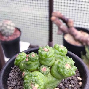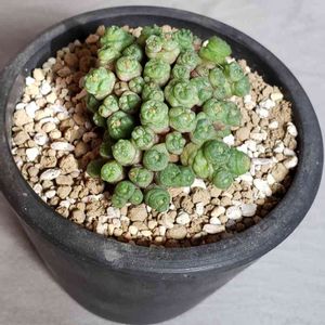 つぶつぶ・キモカワ、モンストサボテンのマミラリア、ボカサナ・フレッド。心おきなく大きくなってくれるように、大きめの鉢に植え替えた。先端がつぶつぶ赤ピンクになっているのは、これの花みたいなものらしい。画像下のほうに綴化の枝も見えているので、これがおおきくなるのも楽しみ。