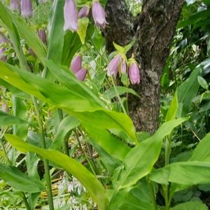 こんばんわー。 今朝は寒かった😱 昨日より気温が高いが、洗濯物がスッキリ乾かなかった😆 白のホタルブクロが一輪の場所は茗荷谷の葉が沢山。 投稿の写真はホタルブクロが主役?だね