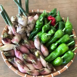 長雨が続いて、茗荷ががちょっと採れるようになりました。シシトウ初収穫です。byミニミニ農園
