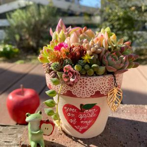 こんにちわ〜(*ˊ˘ˋ*)。♪:*° 今日もすごくいい天気☀️.° 風がなきゃ最高の天気です🎶 絶好の多肉日和なので 先日MUSASHI祭りでお迎えした ベリーさんのリンゴ鉢🍎と リラシアさんの可愛い苗とセダム❣️ メインはガスララちゃん💖 オレンジっぽくてお爪がおピンク💕 安定の可愛さだよ〜(⸝⸝⸝´ꇴ`⸝⸝⸝) コポたんもこのかわいさにメロメロ〜😍 キュンです💗 りんごの季節だね〜🍎 カリッとした歯応えが大好き💕 ライトも大好きなのよ( *´艸`) でもねうちのパパ…… りんごはすらなきゃ食べられないんだよ😆 お子ちゃまかぁーーー🤣 今度アップルパイ作ってみようかなぁ☺️ よし!次の休みに決行だぁヾ(๑⃙⃘´ꇴ`๑⃙⃘)ノ
