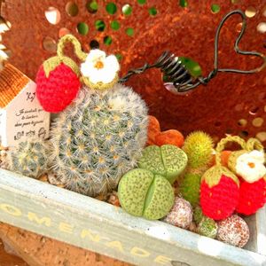 15チャンの🍓の日🌼🌼🌼 2周年おめでとうございます ㊗️🎉💗🍓㊗️🎉💗🍓㊗️🎉💗 リトープスがいよいよ2個に なっちゃったので 編み編み🍓チャン飾ったよ♪ 一緒に買った同僚は お花咲きそう~なんてウキウキ お水あげちゃダメなんだよ~ なんて アドバイス貰っても そんなん知ってるわぃ💢 なんて心の中で毒づいちゃった 荒んでるわぁ.。o○.。o○ みんなの🍓見て浄化しよっと 今日もご安全に⛑️