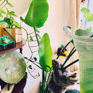 今日のお花 ストレリチア🌿 🐭歳だから、🐭のぬいぐるみを買いに行ったのに、 🦥、ナマケモノを飼いました🙈🎶 実は 前からずっと欲しかった🥳🎶 ストレリチア🌿が、良く似合ってる🤣💖 ご要望にお応えして、、、 中途半端に終了させた刺繍🙈 茎の量と花💐の量が、違うのわかる⁉️