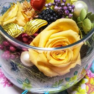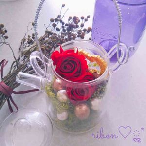 おはようございます 🌱 今日は37度になるんだって❣ 朝から天気予報に (✿>‿<)パタッ⤵ 久し振りに プリザーブドフラワー💛