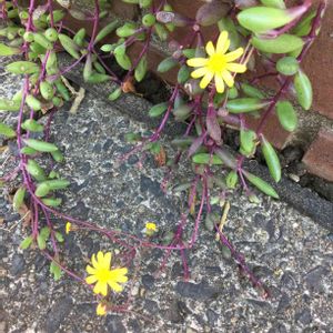 💛花さんぽ🚶🏼♀️🚶🏼♀️小さな黄色の花👀見っけ! 地植えのルビーネックレス(キク科オトンナ属)に花が〜💛💚 細くて長い首が 風に揺れて〜今にも折れてしまいそう 我が家のルビーちゃん、お部屋でぬくぬくしてるのに〜がんばって!💛💚