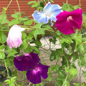 ❥♥︎ 巨大輪あさがお ♥︎❥ 🧚♀️巨大輪あさがお、どんな色が咲くのか毎朝楽しみ✨ 花は、単色、覆輪、絞りの混合と種の袋に書いてあり、もう咲きつくしたかなと思うのですが…❦