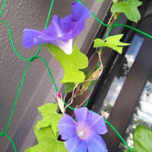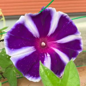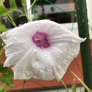 ♥︎❥ 大輪あさがお ♥︎❥ 🧚♀️せっかく咲いたのに、激しく降る雨で本来の花の姿が見れません😅 残念…💦