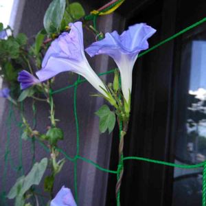 今朝の 朝顔(=^・・^=)♥ 一番上で二つ仲良く 咲いてます😁 (*´∀`*)🌸🌿♫ 全部で14個の花 MAXです(>ω<)😁 美しい朝顔💜 (=^・・^=)💐♫