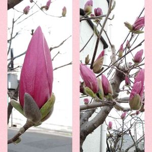 昨日お散歩中に見つけた紫木蓮。 白木蓮も良いですが紫木蓮もまた良いです。 木蓮は空に向かって咲くところ、早春に咲くところ、パッと散ってしまうところがとても好きです。思い出の花。見かけるたび胸がキュッと痛む花です。