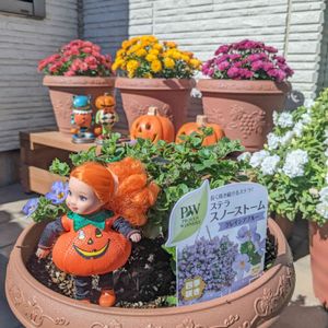 明日はハロウィーンです 別に何もしないけど、娘のお弁当の丸いご飯ジャーにご飯の上に薄くクレープのように卵で覆いこのカボチャの顔を海苔で再現する予定位です💦 もう少し何か出来ないか考えてます… 昨日このカボチャ出しましたが、ライトが着きます 満開に近づくコピアの前で… 明日は私の宝物ハロウィーンミニチュア豪華版とお花です🙄 お花が少ないこの季節ちょっと手を加えガーデニングを楽しみたいですね
