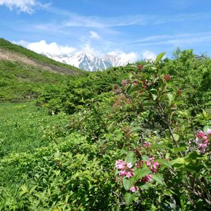雄壮な山々に似合うイワシモツケの花🤍(4枚目)とふわふわの可愛いシモツケソウのお花🩷(1・2枚目)が仲良く咲いていました😍💕 🏷キュンキュン乙女倶楽部に参加させて頂きます🥰