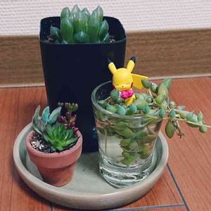 グリーンネックレス 水栽培してみた♡♡ ピカチュウは暑いため水の中にいます٩(๑´囗`๑)۶