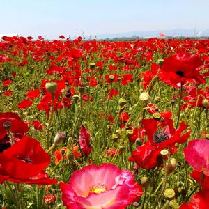 こんにちは 笠岡市干拓地の大規模農園 笠岡ベイファームを訪れました 今、満開です 今日は赤色のポピーの投稿です 日中は暑くなりましたが、風は爽やかで心地よかったです 広い広いポピー畑を風に吹かれながら散策してきました ポピーもユラユラ揺れて 気持ち良さそう 赤色のポピーの中で蜜蜂が真っ赤に染まって 夢見心地かな? 明日も良い日になりますように
