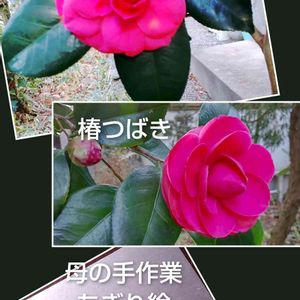 滅多に 回らない 我が家の裏側💦 今年も つばきが綺麗でした😀 ⬇️のちぎり絵は 母が元気だった頃の作品: 山茶花でしょうか…🤗💕