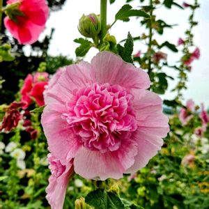 咲き始めは梅雨のはじまり頃で、 てっぺんの花が咲くと梅雨が明けると言われている 🌸タチアオイ(ホリホック) 花言葉:赤・ピンク・紫色 「母の愛」「恩恵」「温厚」「豊かな実り」