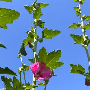 🪴 草花たち その26 タチアオイ(立葵) タチアオイ第二弾。 こちらは、 お花が二つ仲良く咲いてます。 ( ´ ▽ ` )ノ♡ 📝さて、このタチアオイ、 枕草子の「草は」の章段に登場しています。 「葵、いとをかし。 神代よりして、 さるかざしとなりけん、 いみじうめでたし。 もののさまもいとをかし。 …(中略)… 唐葵、日の影にしがたひてかたぶくこそ、 草木といふべくもあらぬ心なれ。」 ※最初の「葵」が二葉葵 「唐葵」がこの立葵と推測される。 *・゜゚⭐︎・*:.。..。.:*・'🌿・*:.。. .。.:*・⭐︎゜゚・*