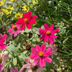 ビビッドカラ―の ジニア(百日草) 気分もあがります‼️ 💖🏵️🍀🍀🌼
