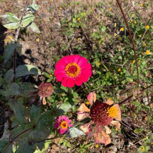 ジニア(百日草) キク科 花言葉 [不在の友を想う] [絆] [古き良き時代] [遠い友を想う] 百日と言う長い間咲き続けます💕😍 色とりどりの百日草に出会いました🤳