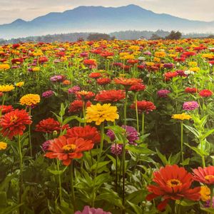 おはようございます☀ 先日お出かけした時見つけた可愛いお花畑です。 このお花、ジニアでした?