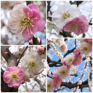 春の梅模様も少しアップ🎵 白と桃色、二色咲きの梅 「おもいのまま」 稀にひと花二色咲き🐝😄 二輪だけ見つけました。 春pic祭り - XVII💮🎵