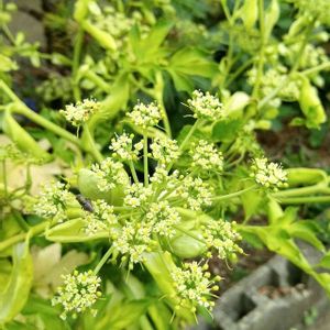 屋上の明日葉(あしたば)の花が🌼 満開です。 明日葉は増え過ぎて困る😅🤭 ほっておくと庭中が明日葉だらけになります。😂