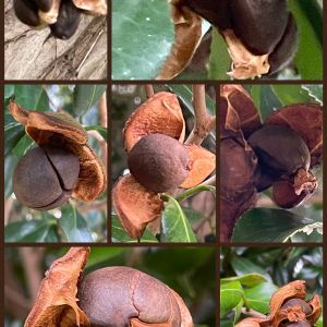 ツバキの実がパッカリ割れていました♪ 種が香ばしくて美味しそうに見えます😋