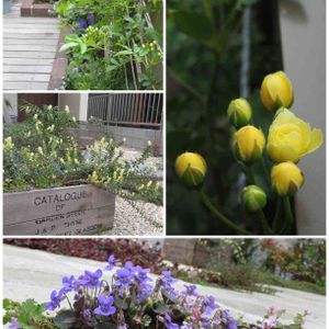 モッコウバラ開花第1号です🌼 玄関側は、昨年植えたビオラ・ラブラドリカとグレコマが、綺麗に咲いてくれました。 ほとんどほったらかしのロータスがわっさわっさ茂って、黄色い花を咲かせています☺️