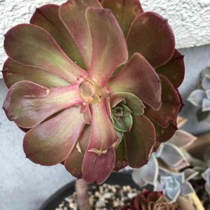 全て同じ日にチョンパしたアエオニウムたち 間引きしなきゃじゃない?っていうぐらいモサモサ新芽をつけてくれている子がある一方で…手前のサラダボールだけは全く新芽が出てきません。 頭の方も、サラダボールだけパリパリになってダメになってしまいました。 元々苗が弱っていたのかな… 半日陰で育成中です。 右2つはそろそろ日光浴しっかりさせようかな〜☀️