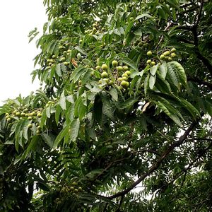 近くにある雑木林(大昔からあるのだろうと思わせる、大木がたくさんあります)から顔を覗かせた「せんだん」の実。この木もかなりの大木です🌳 調べてみたら、「せんだん」はお香の香りなどでお馴染みの「白檀」のことなのだそうです☺️