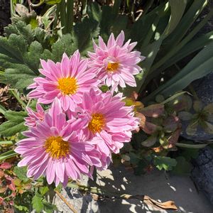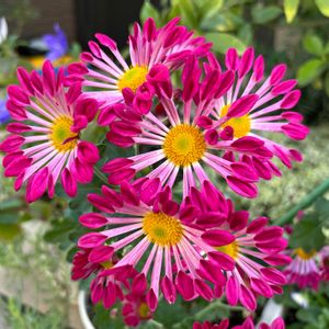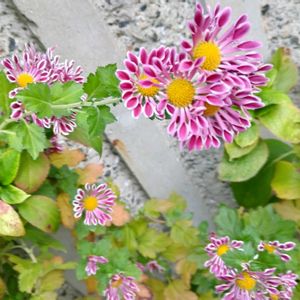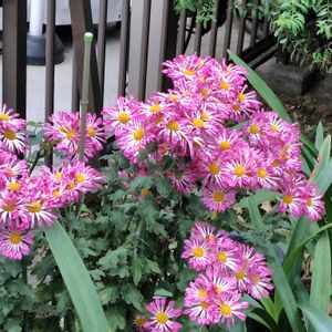 マンション花壇 隣りの棟の花壇に鮮やかな菊が! 今まで気が付きませんでしたが、コミュニティ花壇に咲いている筒状の花弁の先がスプーン状になっているスプレーマムと同じ!😳 色模様は違うけど、これも綺麗!🤗