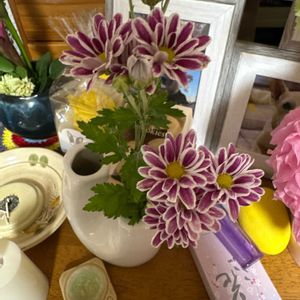 廣ちゃんのお花遊び🌸🍃 スプレーマムのスプレー咲き🥄🌿でお花遊び‥‥ 咲くまでに長くかかりましたが、咲いてからは長く楽しめますね♪