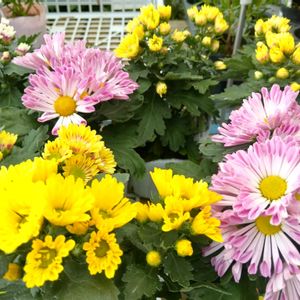 今日のお花💠キク 1️⃣は2年前に花散歩で出会ったスプーン咲きの キク💗🤍お気に入りです💕 2️⃣〜4️⃣菊花展で展示されていたキク❤️💗🩷 5️⃣今年の仏花のキクたち💛🤍💜🧡