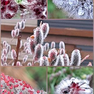 🌱 ピンクネコヤナギ🌱 ヤナギ科 ヤナギ属 雌雄異株 花穂が赤らむネコヤナギ 開花(花では無く花穂)した後しばらくすると蕊が展開します。 雄花は蕊の先の端にオレンジ色の葯が付いた蕊を展開します。 雄花の花穂は雌花より大きく、雌花は成熟すると綿毛に包まれた種を出すそうです。 園芸店では雄株が多く雌株はあまり出回っていないそうです。 ❶❷3月4日撮影 ❸~❺3月14日撮影 赤らんだネコヤナギ、10日目には黄金色に。 光が当たるとキラキラです。 🏷水滴の水曜日に参加させて頂きます。