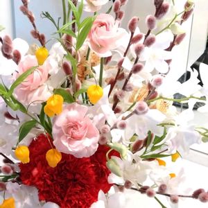 主人の勤め先の七段飾り(十五人飾り)です。 ピンクネコヤナギも入ったアレンジ花も飾られてます。 🏷️真っ赤な火曜日