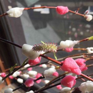 餅花から葉っぱと猫柳??が😯😁なんの木だったかな?