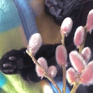 ネコヤナギで遊び疲れて スヤスヤ寝ちゃいました。 今1番のお気に入りです😻🎶 飽きたらドライフラワーに させて頂きます😊💕