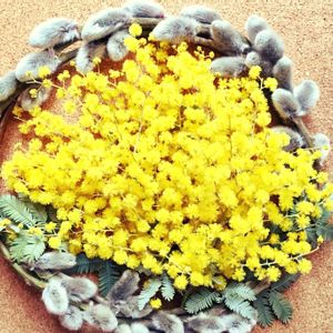 我が家のミモザは鉢植えなので 年々花がスカスカになってます… 今年こそは…(ー ー;) ピンクネコヤナギは グレーネコヤナギになりました😅 (前pic参照)