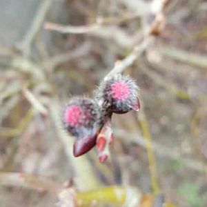 お帽子を被ったピンクネコヤナギ🌼 蕾から ゆっくり ゆっくり ゆっくりでいいのよ😊