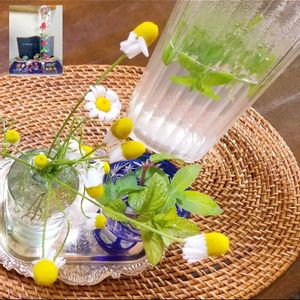 今日のお花 カモミール ベランダで育ててた ミントとカモミール ミントはお水に浸けるだけの スッキリな香りのミントウォーター(過去写真) 梅雨明けたしね 今年も苗探そう🌿 🧵🪡🧵🪡🧵 七夕🎋飾り ちりめんと 石粉粘土とそれの色塗り🎨 天の川に見立てた布の上に “ちゃんと会えますよーに💓” の願いをこめて 楽しく設え。。。