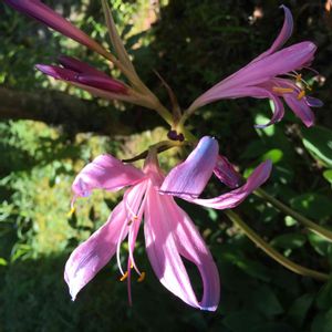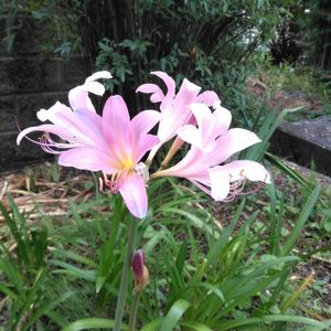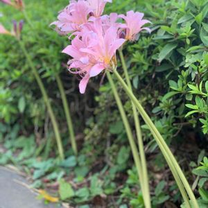 ユリの仲間?かと思ったら、コメントいただきました。 ナツズイセンかリコリス・スプレンゲリーようです。球根を植えた覚えはないのですが、庭の片隅に咲いていました。