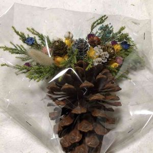松ぼっくり④ 去年はこの様な形で作りました◡̈♥︎ 去年は、今年よりドライフラワーが上手くできたので色鮮やかになりました! 今年は落ち着いた色味が多いです◡̈