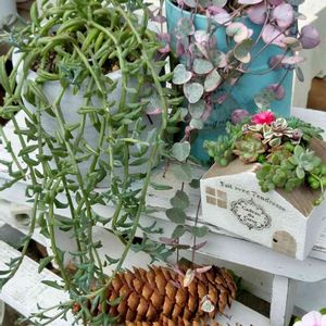 サンルームのクリスマス支度完了🎄💕 jyojiさんのウッドプランターにもくるみや木の実をいっぱい入れました🐿 木の実が大好きでシダローズやドイツトウヒの木の実は何年も前に拾った物です💕 中でも丸ごとのシダローズは超希少です❣️ 木の間に引っかかってるのを旦那が見つけてくれた物✨ ちゅりさんやbeans Clubのyukiさんのクリスマス鉢も並べました❣️