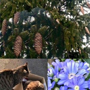 こんにちは 先日カレー屋さんの帰りに見つけた松ぼっくりを撮りに行って来ました とても長い松ぼっくりは15~20センチもあるドイツトウヒの球果です 道路の雪も溶けて来たので1ヶ月ぶりに自転車で八百屋さんへ出掛け、水色のサイネリア220円を連れて帰りました 今朝風邪を引いた赤いお兄ちゃんも病院へ連れて行く事が出来ました 昨日は猫さん達に沢山の優しいお言葉とご心配をいただきまして、ありがとうございました