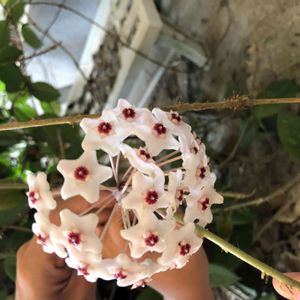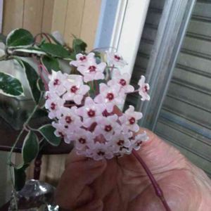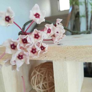 先日の蕾だった ホヤが咲き始めました🌸 3年目でやっと!待ちに待ちました🎶 諦めかけてたんですけどね〜💦 バルコニーにあったのを家族に見て貰おうと玄関に持ってきましたが…素通りです😅 GSでよく香りがいいって事だったので クンクンしたら…チョコレート🍫のような香りがしました😆←私だけかも…✨✨