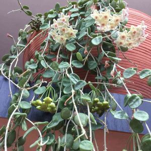 やったー!ホヤさん❗️台風にも負けず、咲いていました💕((o(^∇^)o)) 沖縄は台風直撃しなかったのですが、うちは高台で、風が強くてこのホヤさんが絡んでいるアーチが倒れていたんですが、枯れなくてよかった〜ホッと☺️