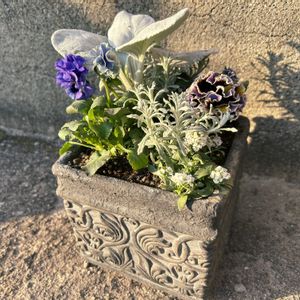 本当は葉牡丹をドーム状に寄せ植したかったんだけど難しくでできなかった🥲 アリッサムとヘデラと合わせた寄せ植えです✿ ヘデラがぴょーーんと上に伸びてて少し笑っちゃいます🤭