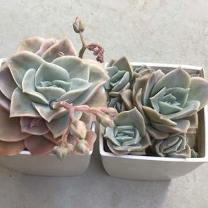 似てるけどちょっと違うシリーズ 左2つがトップスプレンダー 右2つがクラウド 上が親株で下が葉挿しや脇芽で増えた子供たち どちらもよく増えます