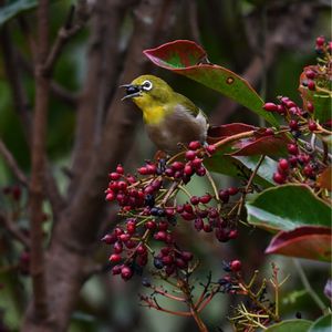 メジロさんがサンゴジュの実を食べにきました。より熟した実を選んでました🤗