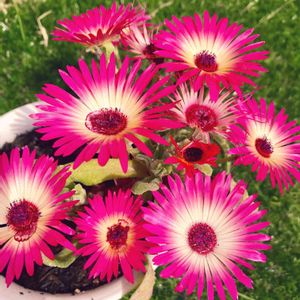 リビングストンデージー ☆日光大好き🌻 ☆日を浴びると花が開きます😄 ☆色が多彩なので、たくさんの植えるとキレイ✨ ☆カーペット状に茎を伸ばすので広めの場所か大きめの鉢がオススメ🎵
