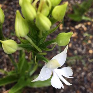 入り口までの通路に『ダイサギソウ』 ラン科 ミズトンボ属・絶滅危惧種。 ふつうのサギソウと、羽根の切れ目が違いますね。 2018/9/21 新宿御苑にて